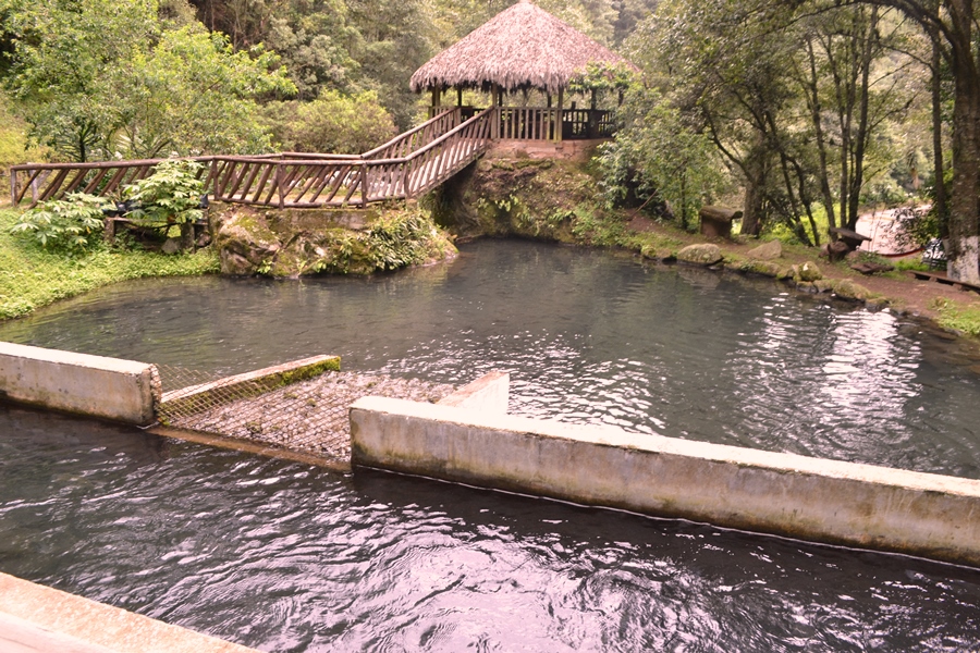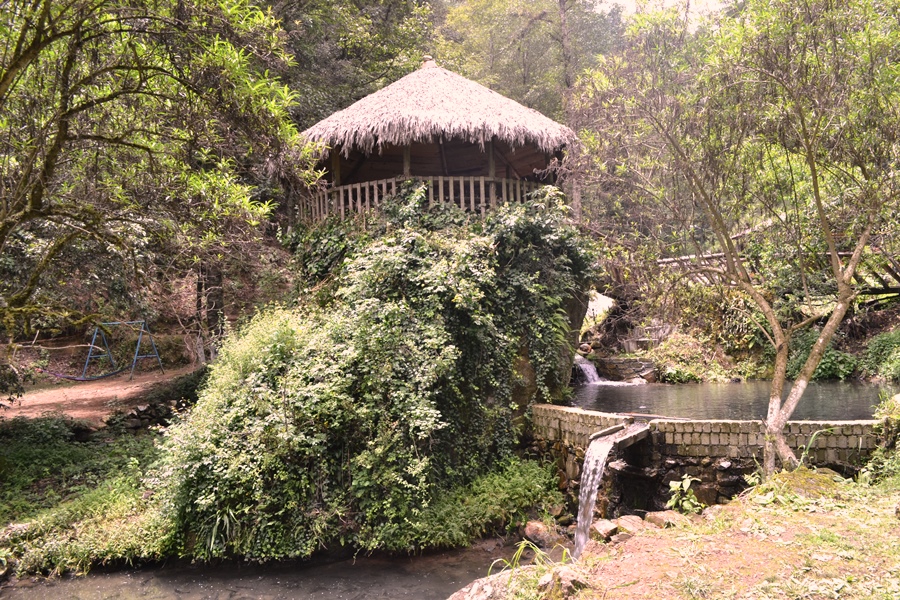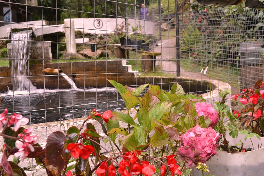 Al llegar te encuentras con una encantadora palapa, el área de juegos infantiles, hamacas, los estanques con las truchas, una infinidad de flores, dos cabañitas y a la derecha, el área del restaurante.